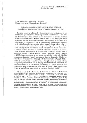 Badania nad kulturą rodzin europejskich. Założenia, problematyka, dotychczasowe wyniki / ETNOGRAFIA POLSKA 1985 t.29 z.1