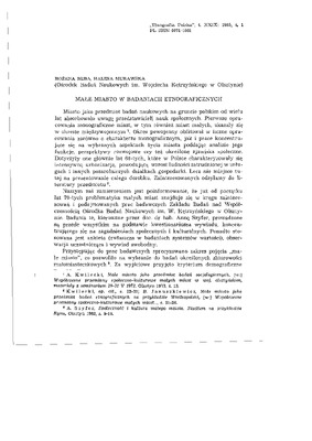 Małe miasto w badaniach etnograficznych / ETNOGRAFIA POLSKA 1985 t.29 z.1