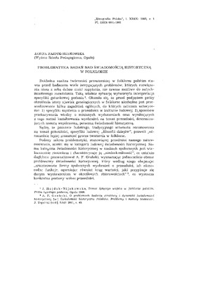 Problematyka badań nad świadomością historyczną w folklorze / ETNOGRAFIA POLSKA 1985 t.29 z.1