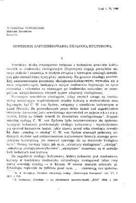 Szwedzkie zainteresowania ekologią kulturową / LUD 1988 t.72