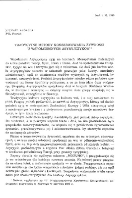 Tradycyjne sposoby konserwowania żywności u współczesnych Asyryjczyków / LUD 1988 t.72