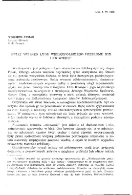 Świat wierzeń ludu wielkopolskiego przełomu XIX i XX wieku / LUD 1988 t.72