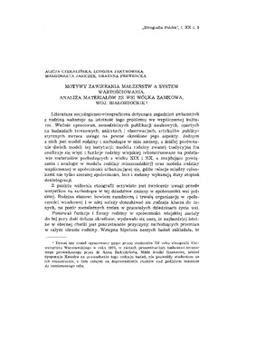 Motywy zawierania małżeństw a system wartościowania. Analiza materiałów ze wsi Wólka Zamkowa, woj. białostockie / ETNOGRAFIA POLSKA 1976 t.20 z.2