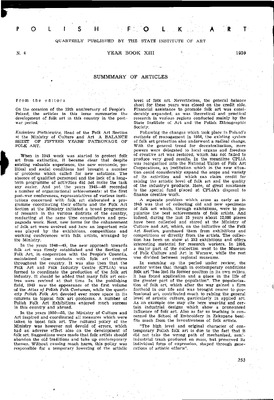 Summary of articles / Polska Sztuka Ludowa - Konteksty 1959 t.13 z.4