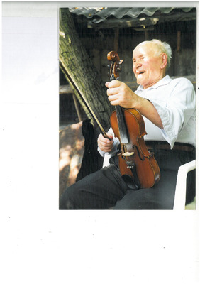 Skrzypek Henryk Kretowicz (1913-2003), zdjęcie zrobione podczas nagrań i rozmów z artystą w trakcie prywatnych badań terenowych na Rzeszowszczyźnie, Głogów Małopolski, lipiec 1999, fot.: Agnieszka Jeż -