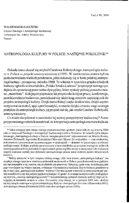 Antropologia kultury w Polsce - następne pokolenie / LUD 2004 t.88