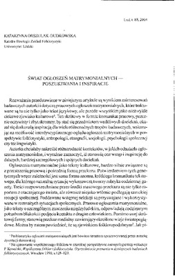 Świat ogłoszeń matrymonialnych - poszukiwania i inspiracje / LUD 2004 t.88