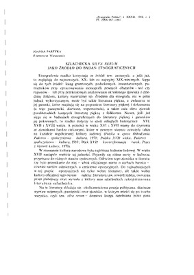 Szlachecka "silva rerum" jako źródło do badań etnograficznych / ETNOGRAFIA POLSKA 1988 t.32 z.2