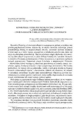 Kowieńskie pisma polskojęzyczne "Nowiny" i "Chata rodzinna" - dwie narracje o relacjach polsko-litewskich / ETNOGRAFIA POLSKA 2006 t.50