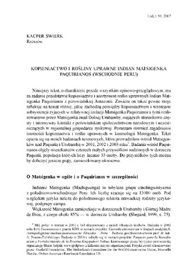 Kopieniactwo i rośliny uprawne IndianMatsigenka Paquirianos ( wschodnie Peru) / LUD 2007 t.91