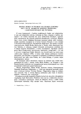 Matka Boska w polskiej kulturze ludowej XIX i XX w. Wybrane kwestie źródłowe i zarysowujące się pytania / ETNOGRAFIA POLSKA 1988 t.32 z.1