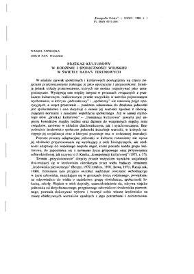 Przekaz kulturowy w rodzinie i społeczności wiejskiej w świetle badań terenowych / ETNOGRAFIA POLSKA 1988 t.32 z.1