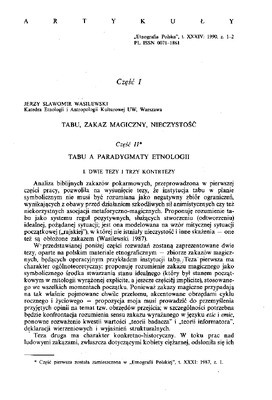Tabu, zakaz magiczny, nieczystość / ETNOGRAFIA POLSKA 1990 t.34