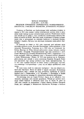 Witold Dynowski (23.08.1903-31.07.1986). Profesor etnografii Uniwersytetu Warszawskiego. Założyciel i naczelny redaktor "Etnografii Polskiej" / ETNOGRAFIA POLSKA 1987 t.31 z.1