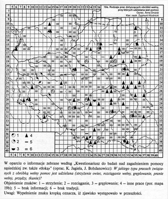 Rodzaje prac dotyczących obróbki wełny, przy których udzialana jest pomoc/ Komentarze do Polskiego Atlasu Etnograficznego (mapy)