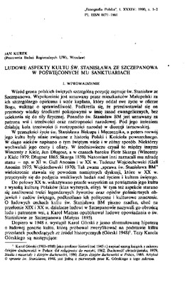 Ludowe aspekty kultu św. Stanisława ze Szczepanowa w poświęconych mu sanktuariach / ETNOGRAFIA POLSKA 1990 t.34