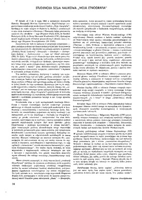 Studencka sesja naukowa p.t. "Moja etnografia" / Polska Sztuka Ludowa - Konteksty 1982 t.36 z.1-4