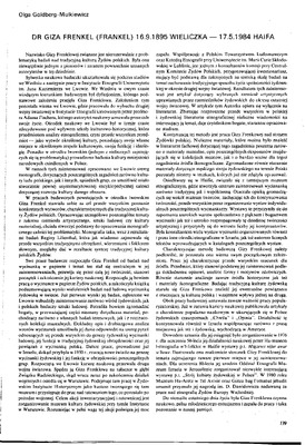 Wspomnienie pośmiertne: Giza Frenkel (Frankel) - 16.09.1895 Wieliczka - 17.05.1984 Haifa / Polska Sztuka Ludowa - Konteksty 1989 t.43 z.1-2