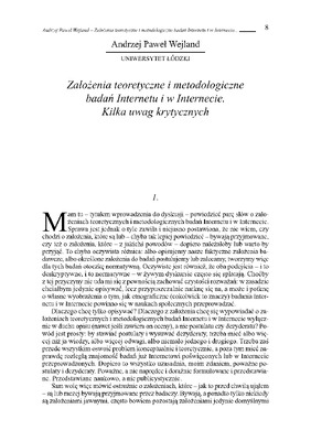 Założenia teoretyczne i metodologiczne badań Internetu i w Internecie / Homo interneticus: etnograficzne wędrówki w głąb sieci