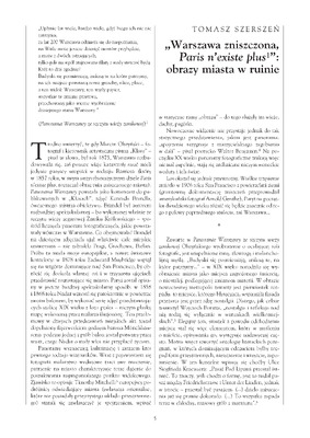 Warszawa zniszczona, Paris n'existe plus: obrazy miasta w ruinie/ Polska Sztuka Ludowa - Konteksty 2005 t.59 z.4