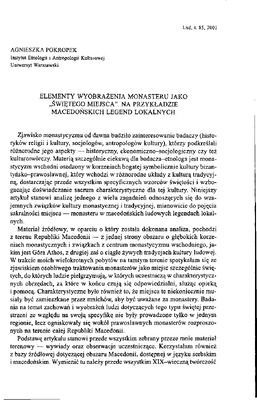 Elementy wyobrażenia monasteru jako "świętego miejsca" / LUD 2001 t.85
