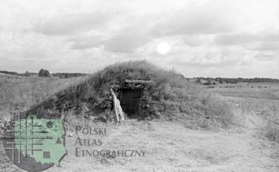 fotografia przedstawia piwnicę ziemiankową z nasypem