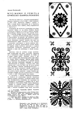Wycinanki z Powiśla otwocko-garwolińskkiego/ Polska Sztuka Ludowa 1962 t.16 z.4