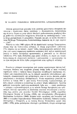 W 90-lecie Polskiego Towarzystwa Ludoznawczego / LUD 1985 t.69