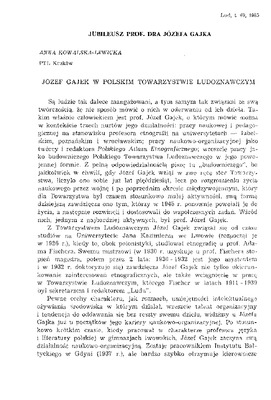 Józef Gajek w Polskim Towarzystwie Ludoznawczym / LUD 1985 t.69