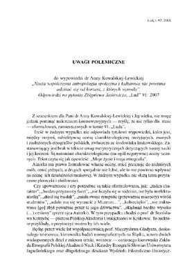 Uwagi polemiczne do wypowiedzi dr Anny Kowalskiej-Lewickiej "Nasza wspólna nowoczesna antropologia społeczna i kulturowa nie powinna odcinać się od korzeni, z których wyrosła" / LUD 2008 t.92