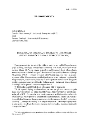 Bibliografia etnografii polskiej w Internecie / LUD 2008 t.92