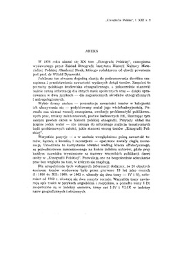 Aneks: Spis treści "Etnografii Polskiej" I-XX: 1958-1976 / ETNOGRAFIA POLSKA 1977 t.21 z.2