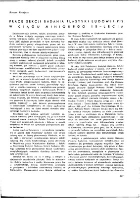 Prace w Sekcji Badania Plastyki Ludowej w ciągu minionego XV-lecia / Polska Sztuka Ludowa - Konteksty 1959 t.13 z.4