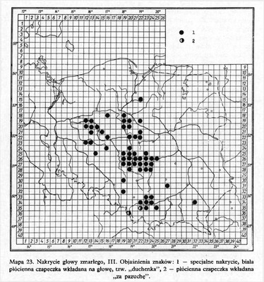Nakrycie głowy zmarłego, I/ Komentarze do Polskiego Atlasu Etnograficznego (mapy)