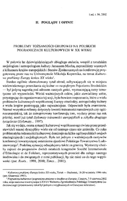 Problemy tożsamości grupowej na polskich pograniczach kulturowych w XX wieku / LUD 2002 t.86