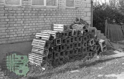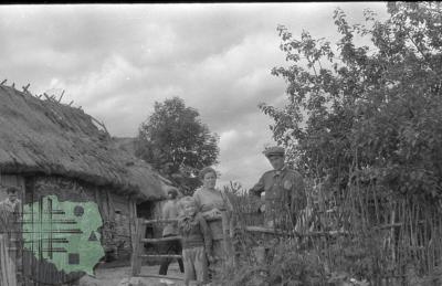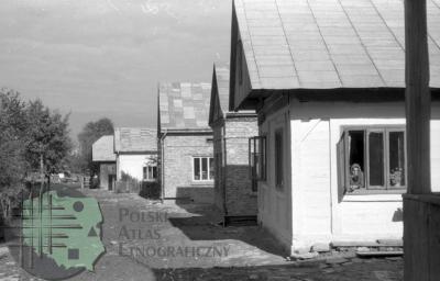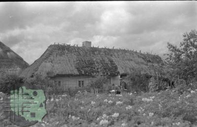 fotografia przedstawia budynek mieszkalny Uwaga: - fotografia powstała w trakcie badań etnologicznych po 1 roku studiów Z. Kłodnickiego (Międzyuczelniany Obóz Etnograficzny organizowany przez etnologię warszawską pod kierunkiem Anny Kutrzeby-Pojnarowej)