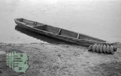 fotografia przedstawia prom na rzece Bug (pomiędzy Drohiczynem a Bużyskami). Uwaga:- fotografia powstała w trakcie badań etnologicznych po 1 roku studiów Z. Kłodnickiego (praktyka terenowa)