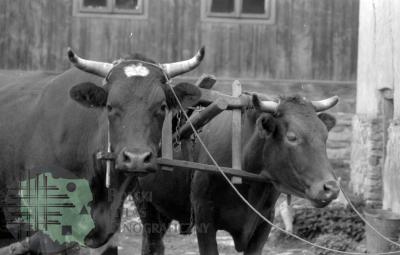 fotografie przedstawiają zaprzęg wołowy w jarzmo naszyjne (1) zaprzęg wołowy i mężczyznę (informatora) (2) oraz zaprzęg i mężczyznę (informatora) i kobietę (3)