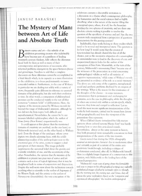 The Mystery of Man: between Art of Life and Absolute Truth=Malinowski i Witkacy: między sztuką życia a prawdą absolutną / Polska Sztuka Ludowa - Konteksty 2000 t.54 z.1-4