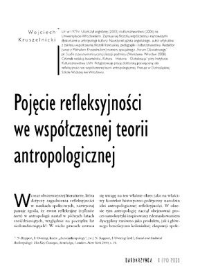Pojęcie refleksyjności we współczesnej teorii antropologicznej/ Barbarzyńca 2009 nr 1 (14)