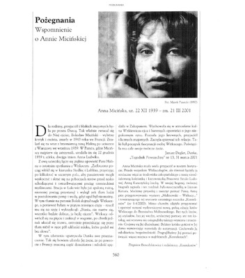 Pożegnania. Wspomnienie o Annie Micińskiej / Polska Sztuka Ludowa - Konteksty 2001 t.55 z.1-4