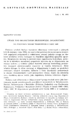 Uwagi nad rolnictwem środkowego Afganistanu / LUD 1972 t.56