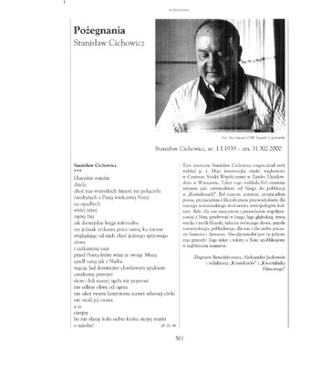 Pożegnania. Stanisław Cichowicz / Polska Sztuka Ludowa - Konteksty 2001 t.55 z.1-4
