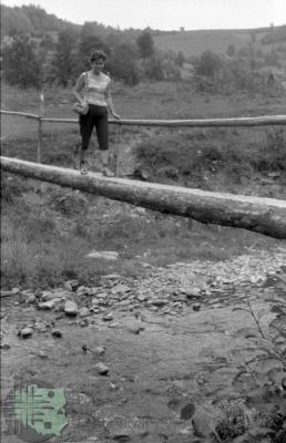 Kobieta idąca przez kładkę / Kolekcja fotografii Zygmunta Kłodnickiego - Wołkowyja (woj. podkarpackie)