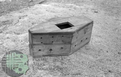 fotografia przedstawia sadz skrzynkowy (do przechowywania złowionych ryb w wodzie)
