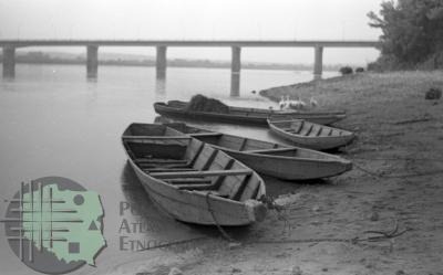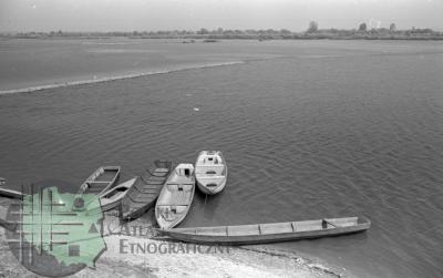 fotografia przedstawia oraz kilka typów łodzi (1) oraz zbliżenie dwóch z tych łodzi - płaskodenną i z dnem zaoblonym (2). Uwaga:- lokalizacja na mapie jest przybliżona -