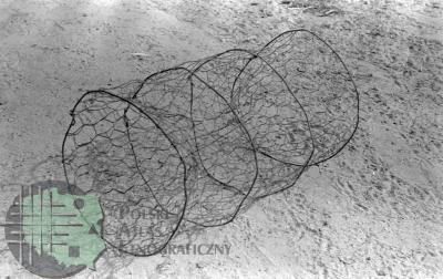 fotografie przedstawiają fotografia wierszę - samołówkę rybacką z dwoma sercami typu bębenek wykonaną z siatki drucianej (1), więcierz dwuskrzydłowy (2),usztywnioną kłonię pałąkowatą (3)