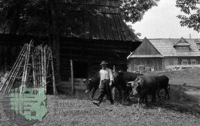 Góral wyprowadzający krowy na pastwisko / Kolekcja fotografii Zygmunta Kłodnickiego - Brzegi (woj. małopolskie)