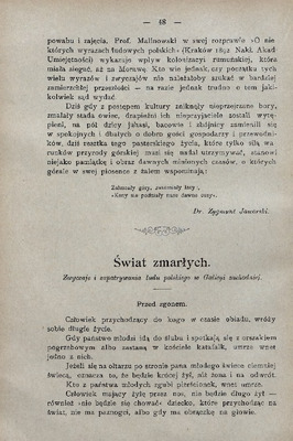 Świat zmarłych . Zwyczaje i zapatrywania ludu polskiego w Galicyi zachodniej/ Lud, 1902, t. 8