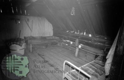 fotografia przedstawia wnętrze szałasu pasterskiego (część mieszkalno-gospodarcza). Uwaga:- lokalizacja na mapie jest przybliżona